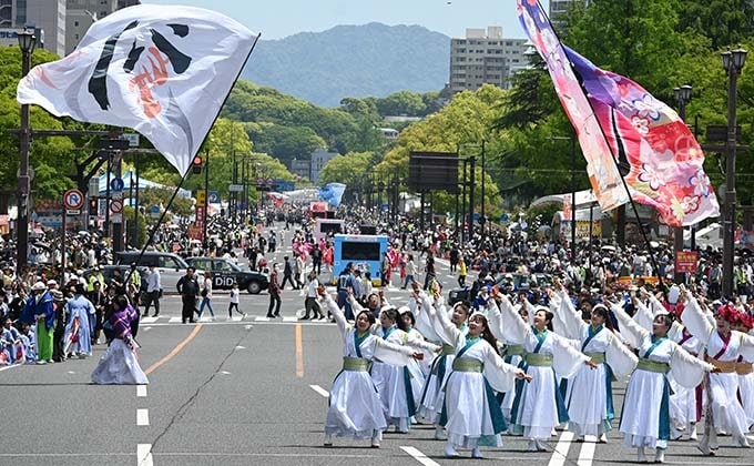 平和大通りでの「きんさいYOSAKOIパレード」を「パフォーマンスパレード」に変更しました。41団体が参加しました。 - きんさいYOSAKOIステージ